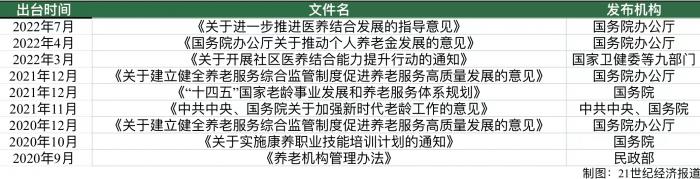 近年来,我国医养政策不断更新,国内养老政策频出,取得积极进展,相关意见逐渐走向深化细化,我国养老服务保障体系的建立逐渐走上正轨。