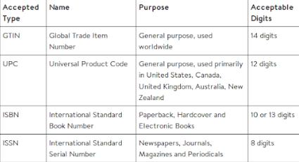 条形码是产品的另一标识,而沃尔玛不接受条形码残缺、无效或重复的产品。下图是沃尔玛目前接受的四种产品ID。