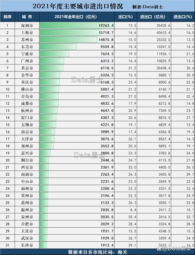 广州外贸大省,交易额全国占比高,深圳有雄厚物流基础设施,跨境电商业务领先,上海依托港口和经济商业发达位居前列。